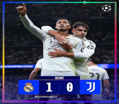 比赛进行到第57分钟,维尼修斯在禁区左路连续闪转腾挪后晃开角度起脚劲射,皮球击中远端立柱弹出,贝林厄姆跟上补射破门,皇马在场上1-0取得领先。1-0的比分保持到了终场,尤文图斯遭遇各项赛事7场不胜。