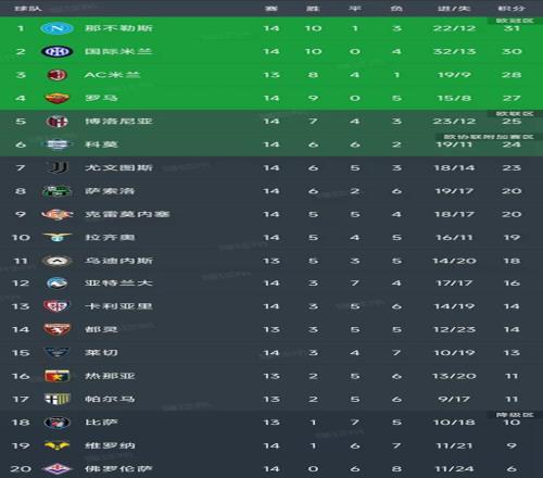 意甲第14轮结束了7场比赛,最新积分榜如下!