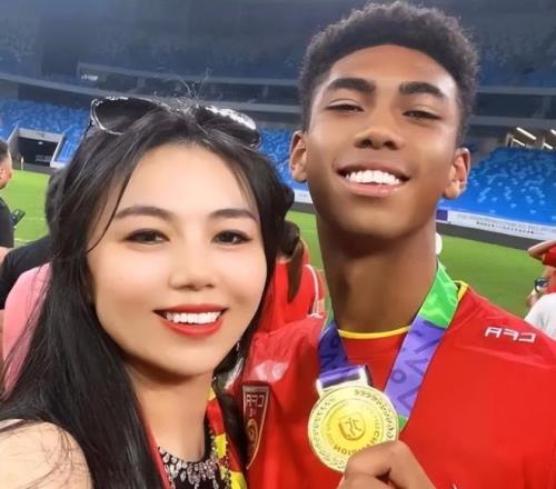 在率队以全胜战绩夺得中青赛冠军的赛后,17岁的恒大混血中卫张洪福,与自己的母亲开心晒出合影庆祝。
