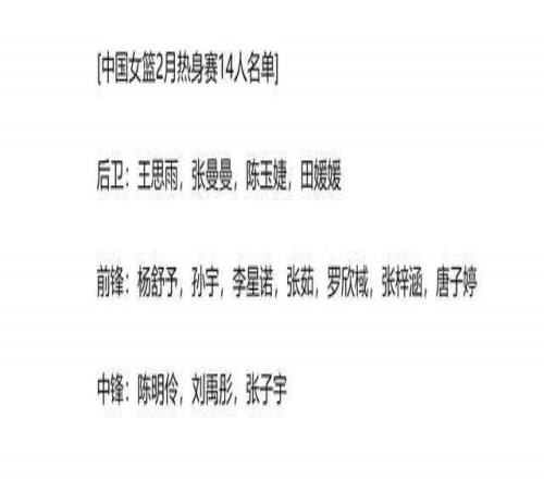 本期集训大名单,中国女篮选择李月汝、张子宇和陈明伶三大中锋,意在通过热身赛进行检验。如果到了3月的世界杯资格赛,韩旭、李月汝回归,那么国内中锋选择将作出调整。如果不能回归,可能这三人就需要挑起大梁了。